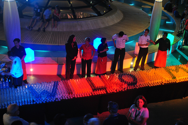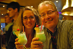und gehen an den Strand. Nach einem Glas Wein treten wir den Rückweg an. Termine, Termine: Um 17.15 Uhr mixen die Offiziere auf dem Pooldeck Drinks zum Schnäppchen-Preis ( 6 für € 10,50). Wir haben einen schönen Platz und trinken uns durch das Angebot.