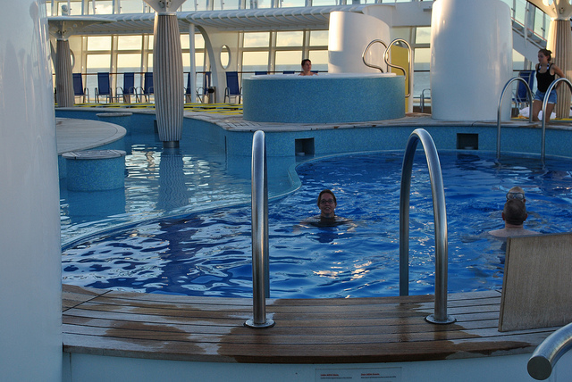 Das Morgenprogramm wird um einen Saunabesuch um 09.00 Uhr ergänzt. Joggen – Schwimmen – Sauna. Dort treffe ich mich mit Kai, der um 08.30 Uhr massiert wurde. So kann der Tag beginnen! Das Pooldeck ist heute leider sehr voll und wir bekommen keine schönen Plätze. Wir machen das Beste daraus und gehen um 15.00 Uhr zum Sport, dann in die Sauna. Zwischendurch stärken wir uns im California Grill und schaffen eine Grundlage für die Cocktails, die noch auf uns warten. Die Zeit vergeht hier wie im Flug und schon wieder ist ein Tag auf See vergangen.