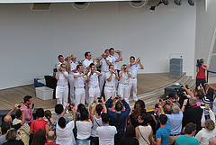 Zu Abend Essen wir draußen beim Bella Donna und genießen den lauen Sommerabend. Auf dem Deck werden die Vorbereitungen für die Willkommensparty getroffen. Um 22.00 Uhr geht es los. Mit Sekt und Musik beginnt ein erster schöner Abend an Deck und morgen erwartet uns ein Seetag an Bord der AIDA.