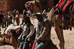 Wir fahren durch die Wüste bis Petra und tauchen dort gleich in die arabische Welt ein. Händler ohne Ende. Dromedare, Pferde und Kutschen, alle wollen die Touristen durch die Felsenschlucht zur Ruinenstadt Petra transportieren.