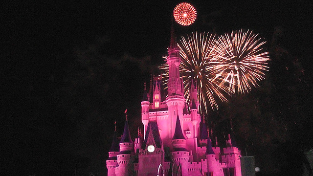 Auch heute regnet es, aber wir lassen uns nicht aufhalten. Wir bummeln die Main Street rauf und runter und halten schon mal Ausschau nach Andenken, die wir hier kaufen wollen. Am Abend ein doppeltes Erlebnis: Erst die Electrical Parade und dann das große Feuerwerk mit Lasershow auf dem Schloss, das in schönste (kitschige) Farben getaucht wird und als Leinwand dient.