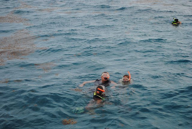 Unser Tripp ist wirklich schön. Erst raus aufs Meer zum Riff. Wir schnorcheln hier eine Stunde. Es bringt wieder viel Spaß und wir sehen wieder viele Fische. Kai und Tjorven sehen sogar einen Hai.