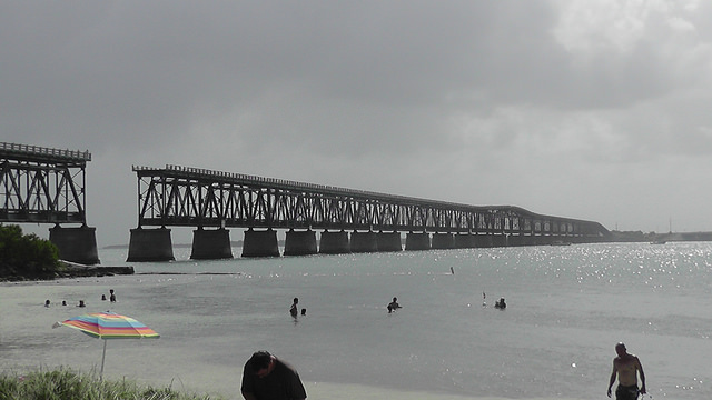 Bei MM 36,5 machen wir im Bahia Honda State Park rast. Hier gibt es ein bisschen Strand und Teile der alten Eisenbahnbrücke zu sehen. Hier soll die Luft- und Wassertemperaturen am höchsten sein. Unser Hotel ist sehr schön mit einem großen Pool. Wir gehen gleich in die Stadt zum Sunset am Mallory Square. Auf der Duval Street ist richtig Party.