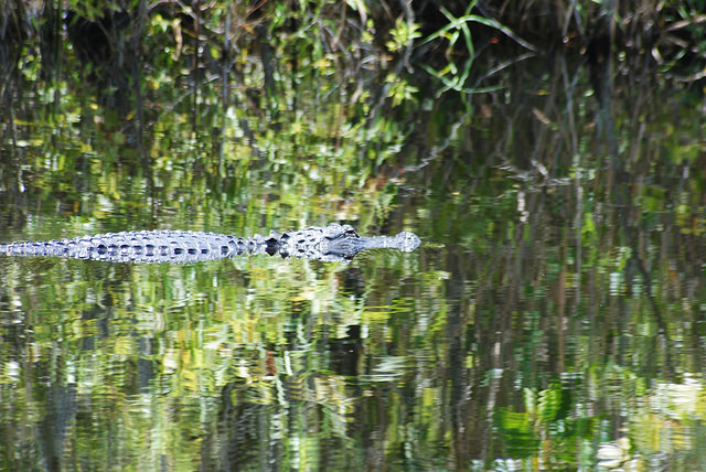 Auf der „9336“ fahren wir nicht ganz bis Flamingo. Wir halten beim Visitor Center und weiter geht es zu den ersten Trails auf der Strecke in Richtung Flamingo. Wir gehen der „Anhinga Trail“ und sehen den ersten Alligator.
