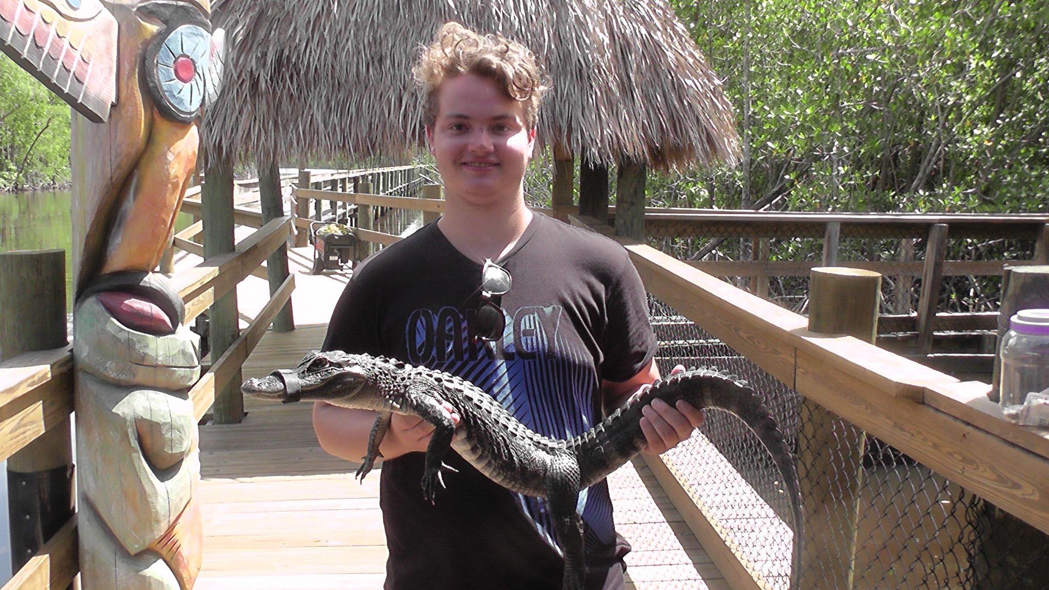 Außerdem gibt es dort noch einen aus Holz angelegten Trail. Wir treffen dort auf einen Alligatoren Experten, der uns allerlei erzählt und uns dann einen kleinen Alligatoren für ein Foto auf den Arm gibt.
