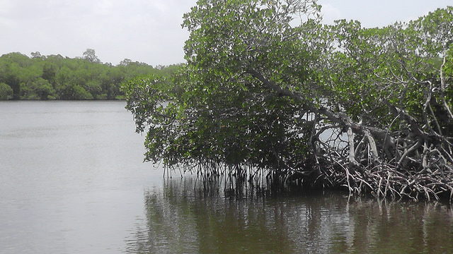 Die Tour ist wirklich gut. Wir sehen viel von der Wasserlandschaft, fahren durch Mangroventunnel, nehmen manchmal richtig fahrt auf. Ein Alligator kreuzt unseren Weg (oder wir seinen). In den Mangroven sehen wir Waschbären und im Wasser Piranhas. Auf den Mangroven wandern kleine schwarze Krebse.