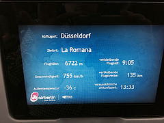 Um 4.00 Uhr klingelt der Wecker und zu um 5.00 Uhr ist das Taxi bestellt. Um 6.20 Uhr soll es von Hamburg nach Düsseldorf gehen und dann weiter in die Dominikanische Republik. Kai freut sich, dass unser Gepäck gleich durchgecheckt wird und wir schon unsere Bordkarten für den Weiterflug bekommen haben. Ganz so ohne Probleme heben wir doch nicht ab. Nach einem kurzen anrollen meldet der Pilot, dass nicht alle Kontrollleuten funktionieren. Erst heißt es sogar, dass wir eventuell wieder aussteigen müssen. Viele Augen gehen in Richtung Uhr, denn wer will schon in Düsseldorf bleiben? 😉 Fast alle haben einen Anschlussflug. Doch Glück im Unglück: Wir starten mit Verspätung, aber landen noch rechtzeitig. Die 10 Stunden Flug bis zum Ziel vergingen „wie im Flug“. Zwei Filme, ein bisschen schlafen, zwei Mahlzeiten und schon sind wir in La Romana. Von dort ging es schnell zum und auf das Schiff.