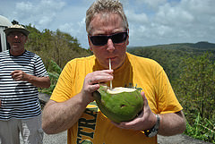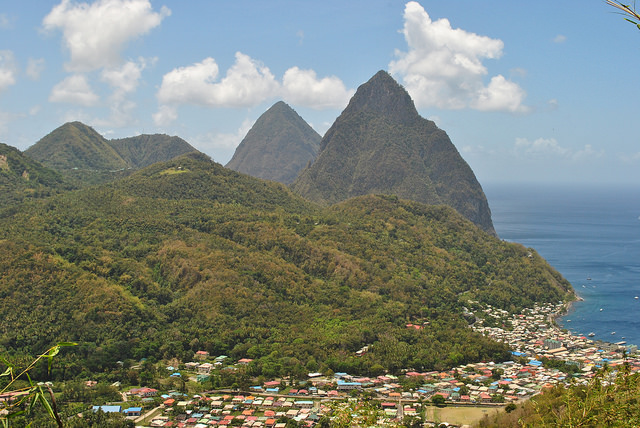 Wir halten an vielen Aussichtspunkten und sehen auch die beiden Pitons, St. Lucias vulkanische Wahrzeichen. Hier wachsen viele Brotfruchtbäume und es gibt Bananenplantagen. Kochbananen und die Brotfrüchte sind hier Grundnahrungsmittel. Wir sehen auch Tamerinenbäume. Die Frucht schmeckt süß-sauer und unsere Reiseleiterin lässt uns ein Gebäck aus dieser Fucht probieren. Außerdem probieren wir ein heimisches Brot und Kokosnussmilch aus einer frischen Kokosnuss.