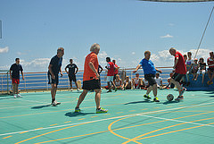 Die Zeit vergeht wie im Flug! Um 10.00 Uhr ist Fußball angesagt. Kais Mannschaft “ The Lucky Five“ spielt gegen die Mannschaft der AIDA Crew um den 3. Platz (und verliert).