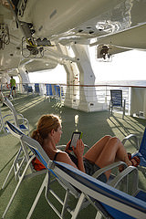 Der Tag beginnt mit morgendlichem Streching und natürlich – mit einem Bad im Pool. In der Kabine zurück schläft Kai noch. Aber nicht mehr lange, denn heute wird Fußball gespielt. Sein Einsatz dauert aber nicht lange. Als ich zum Joggen hoch komme, ist die 1. Runde schon geschafft. Um 14.00 Uhr geht es weiter. Zeit genug für mich noch mal zu laufen und für einen „Atlantikbrunch“. Wo verbringen wir die restliche Zeit? Auf unserem Deck fünf. Heute mal mit Wolldecke. Das Wetter ist immer noch herrlich, aber der Wind wird frischer. Tatsächlich ist es auf dem Pooldeck wärmer, wie wir später feststellen. Kai beginnt seine 2. Fußballrunde und ich gehe zu meiner neuen Lieblingssportart, dem Indoor Cycling. Leider ist heute auch Bergfest. Die Hälfte unserer Reise ist schon vorbei. Auf dem Pooldeck ist es ein Grund mit Sekt und Häppchen zu feiern. Warum eigentlich? Heute gibt es einen Planters Punch zum halben Preis und wir haben zur Abwechslung in der Sushi Bar reserviert. Wir lassen uns „Sushi satt“ schmecken. Erst gibt es Algensalat und dann eine Platte mit der Sushiauswahl zum Kosten und anschließendem Weiteressen