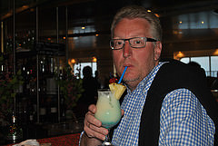 Die Morgengymnastik heißt heute Fiscial Balance. Was es nicht alles gibt. Mit einer Massagerolle betreibt man Selbstmassage. Bringt aber Spaß. Kai hat sich zum Fußballturnier angemeldet, das hier an Bord während der Seetage ausgetragen wird. Wegen der Terminlage – auch auf dem Antlantik kann es Terminnot geben – fällt das Frühstück aus. Ich ahne nicht, dass auch das Fußballspiel ausfällt, denn Kai hat sich einen Tag zu früh bereit gemacht und gehe noch einmal in die Sauna und in den Pool. Kann Urlaub schön sein! Kai geht aus Frust auf den Stepper und später treffen wir uns bei einem Vortrag „Gesunde Ernährung“. Einer der Vorträge, die hier für eine gesunde Lebensweise angeboten werden. Jetzt wurde so viel vom Essen gesprochen, dass wir erstmalig den „Atlantikbrunch“ aufsuchen. Unsere Menüzusammenstellung ist vom Vortrag geprägt. Es kommen keine Kohlehydrate auf den Teller! Die Kunst hier an Bord ist wenig zu essen. Nach einem gemeinsamen Saunagang und einem Sonnenbad haben wir heute unser Fantreffen. Jemand aus der Facebook-Gruppe hat es organisiert. Mit Sekt und Ansprache vom Kapitän – was will man mehr. Zwischendurch muss ich schnell weg um mich für morgen zum Indoor Cycling anzumelden. Ab 18.00 Uhr beginnt die Anmeldung und die Plätze sind schnell weg! Die Sportart ist sehr beliebt. Wir sind jetzt schon abendtauglich gekleidet und überbrücken die Zeit bis zu unserem Cocktail auf Deck 5. Es gibt heute einen Piña Colada.