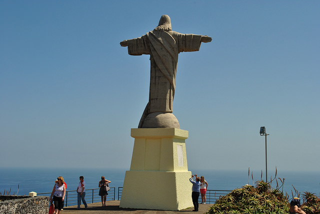 Es geht durch viele Tunnel und über steile Straßen die Serpentinen rauf und runter und immer (außer in den Tunneln) mit schönem Blick auf die Landschaft. Vorbei am Flugplatz, dessen verlängerte Landebahn ganz interessant anzusehen ist, geht es zu der großen Christusfigur. So eine wie in Lissabon.