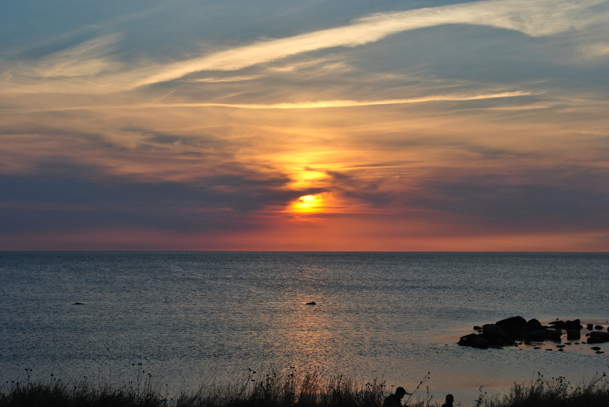 Im Reiseführer wird der Weg mit 30 Min. angegeben. Wie langsam muss der Autor gegangen sein? Wir schaffen es in der Hälfte der Zeit. Der Felsen ist sehr interessant. Der Weg geht noch weiter zu einer Bunkeranlage. Hier hat man einen schönen Blick auf das Meer. Die Kinder bleiben dort in der Sonne. Kai und ich spazieren noch etwas durch den Wald. Heute gibt es auf unserem Ausflug ein Picknick. Natürlich Köttbullar. Zurück im Ort stärken wir uns noch mit einem Eis. Ich suche mir ein Salmiakki-Eis aus. Das ist richtig lecker! Der Räucherfisch für unser Abendbrot wird auch gleich eingekauft. Trotzdem müssen wir noch zum Supermarkt. Dort in der Nähe ist aber auch die Stenkyrka, die sehr sehenswert ist. Wir machen uns auf den Weg zur Sehenswürdigkeit und zum Einkauf. Zum Fisch soll es Pellkartoffeln geben. Unser Essen war richtig gut! Zum Nachtisch gab es Kanelbullar zum Aufbacken. Ach ja, vor dem Essen war ich noch Joggen in einem nahe gelegenen Naturschutzgebiet, das ich auf diese Weise entdeckt habe. Da hatte ich mir das gute Essen auch verdient. Um den traumhaften Sonnenuntergang zu genießen, finden Kai und ich ein schönes Plätzchen am Meer. Als Sundowner gibt es ein schönes Bier.