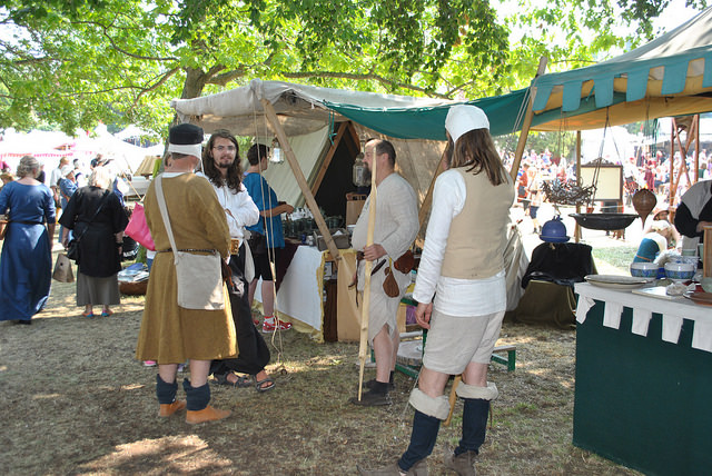 Regentropfen fallen auf unser Zelt – was für ein seltenes Geräusch. Zum Glück ist es Nacht. Der Morgen ist auch erst bewölkt, vermischt mit wenigen Tropfen Regen. Die Temperatur stimmt aber. Das Gute: Wir können mit gutem Gewissen länger liegen bleiben. Schon beim Frühstück reißt es auf. Mit dem Fahrrad geht es zum Mittelalterfest und der Himmel ist schon wieder blau. Der Mittelaltermarkt ist wirklich riesig! So viele, die sich verkleidet haben. Auch bei unserem Rundgang durch die Stadt treffen wir immer wieder Mittelalter Fans.