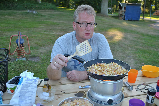 Falukorv mit Snabbmakkarona. Zum Nachtisch gab es Eis. Heute Abend ist es richtig kalt und feucht. Da ruft bald der Schlafsack!