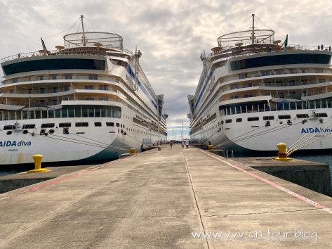 Die AIDAmar ist schon dort und liegt am Kreuzfahrtterminal, so dass wir mit einem Shuttlebus dorthin gebracht werden. Diesmal klappt die Organisation besser als in Le Havre.