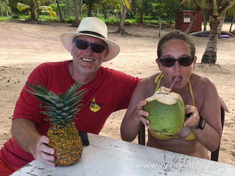 Nur der Esel ist betrunken. Er frisst die Überreste der Piña Coladas – die ausgehöhlten Ananas. Er hat ein krankes Bein, aber seine Überlebensstrategie gefunden. Ein weiterer Stopp gilt einer Schildkröten Rettungsstation. Hier werden Schildkröteneier ausgebrütet und die „Kleinen“ dann zum Nest zurückgebracht. Von dort beginnt ihr harter Überlebenskampf ins Meer.
