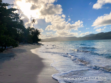 Die Tenderboote sind um 11.00 Uhr bereit. Heute gibt es keinen Hafen zum Anlegen. Wir haben es eilig – ein privater Ausflug, den wir schon von zu Hause gebucht haben, wartet auf uns – und so sitzen wir im ersten Boot. Eine Tour zu drei der schönsten Stränden ist geplant. Manfred wird schnell gefunden und die Reise in seinem Auto beginnt. Viel ist hier ohnehin nicht los – auch hier sind wir das erste und einzige Kreuzfahrtschiff.