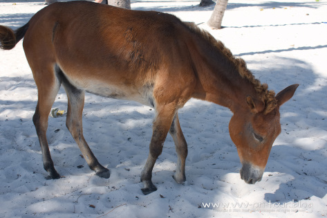 Hier gibt es keine Liegen, aber viele schattenspendende Palmen und einen Esel. Es kann auch geschnorchelt werden, aber so aufregend ist die Unterwasserwelt nicht. Natürlich werden wieder rumhaltige Getränke ausgeschenkt.
