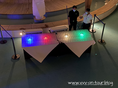 Schon neigt sich der Tag dem Ende und es wird schon wieder Zeit zum Essen zu gehen. Die Zeiten sind bisher leider etwas eingeschränkt: Bis 20.30 Uhr bzw. 21.00 Uhr haben die beiden Restaurants nur geöffnet. Der Weg in die Kabine führt am Theatrium vorbei und dort wird heute gezaubert. Zauberer sind eigentlich nicht unsere Favoriten, an diesem bleiben wir hängen: Felix Gauger kann sehr fesselnd sein.