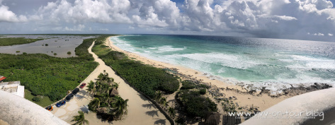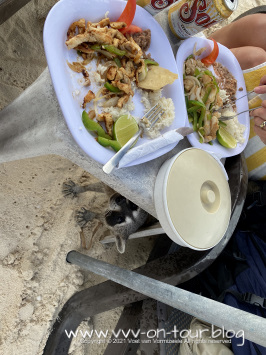 Der nächste Halt ist schon am Strand. Hier gibt es Liegen, Sonnenschirme, Meer und leckeres mexikanisches Essen. Es wird direkt an die Liege serviert. Auch ein Waschbär fühlt sich eingeladen und muss vertrieben werden. Der Badestopp ist wieder sehr schön, aber das versprochene Schnorchelrevier bleibt unentdeckt. Leider kommt das Schnorcheln auf dieser Reise zu kurz. Schon geht es zurück zum Ausgangspunkt. Wir hatten einen sehr schönen Tag mit JC, der uns auch viele Informationen gegeben hat.