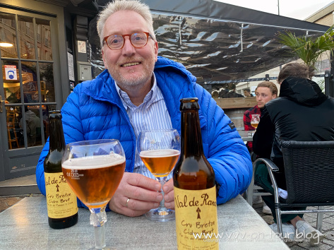 Es gibt kleine Läden, Bäckereien und Lokale, die zum draußen Sitzen einladen. Etwas französisches soll hier noch verspeist werden: Ein Cidre.