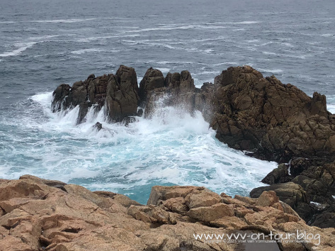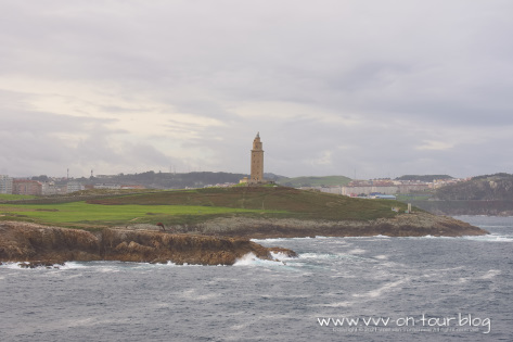 Die Hafeneinfahrt ist sehr schön und schon von Weitem zeigt sich der Leuchtturm „Torre de Hercules“ an der rauen Küste Galiciens. Den wollen wir besuchen.