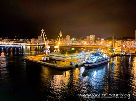 Nach dem Abendessen ist es noch sehr angenehm an Deck. Die beleuchtete Stadt ist schön anzusehen, gerade auch bei Dunkelheit. Es ist wirklich mild mit 15 ° C. Um 22.00 Uhr geht die Reise geht weiter in Richtung La Coruña.