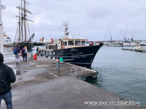 Walfische, wir kommen! Pünktlich legt das Schiff an und wir sind gleich von Bord. Da liegen schon die Boote! Doch die Enttäuschung lässt nicht lange auf sich warten: Wegen der Wetterlage gibt es keine Touren. Wieder so ein Pech wie auf Island. Die Walfische mögen uns wohl nicht.