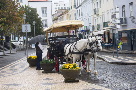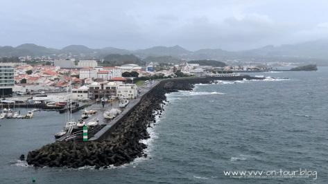 Gutes WLAN gibt es hier auch. Das die Azoren zu Portugal gehören, lassen die gekachelten Straßennamen erkennen. Leider regnet es sich ein und es geht zurück auf die AIDA.