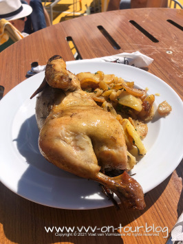 Der Tag ist wieder sonnig und warm mit gelegentlichen Regentropfen. Ein Genuss wieder draußen zu Essen unter dem Sternenhimmel. Das macht das zunehmend milde Klima seit gestern möglich.