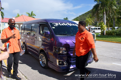 Zu sechst besteigen wir das lilafarbene Taxi von Sonia, die uns auf einer 4-stündigen Fahrt ( $ 40,00 p. P.) die Insel zeigt mit Badestopp.
