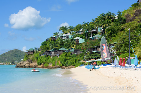 Ein Strand mit einer Insel in der Mitte, so wird Antigua beschrieben. Eine Insel mit 365 Traumstränden. Davon soll wenigstens einer erobert werden. Das schöne: Kein anderes Kreuzfahrtschiff wird heute erwartet. Mit Überfüllung ist nicht zu rechnen. Wieder stehen Taxen bereit. Zu viert wird die Fahrt günstiger ( $ 16,00 p. P. hin und zurück) Die Vermittlerin treibt noch ein nettes Paar für einen gemeinsamen Strandbesuch auf. 20 Minuten dauert die Fahrt in eine sehr schöne Bucht, die Valley Church Bay.