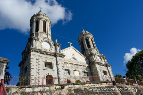 Dort gibt es Liegen und Sonnenschirme für $ 20,00. Das Wasser ist schön warm mit leichter Brandung und die schattigen Liegen laden zum Entspannen ein. Viel zu schnell ist es 15.00 Uhr und es geht nach St. John‘s zurück. Die Hauptstadt ist in keinem guten Zustand. Riesige Stolperfallen zieren die Straßen und Gehwege. Eine aus der Ferne imposante Kirche entpuppt sich aus der Nähe als baufällig und darf auch nicht betreten werden.