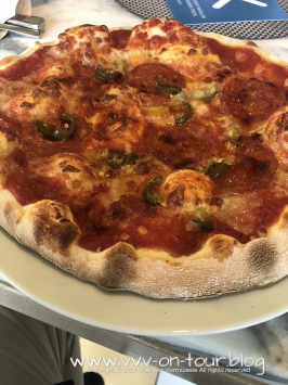 Da ist Gelegenheit, die Pizzeria auszuprobieren, die jetzt ein Restaurant ist und bis 17.00 Uhr am Nachmittag geöffnet hat. Die Pizza schmeckt, ist aber ein reichhaltiger Snack. Die unkomplizierten Pizzastückchen fehlen einfach als kleiner Imbiss für zwischendurch.
