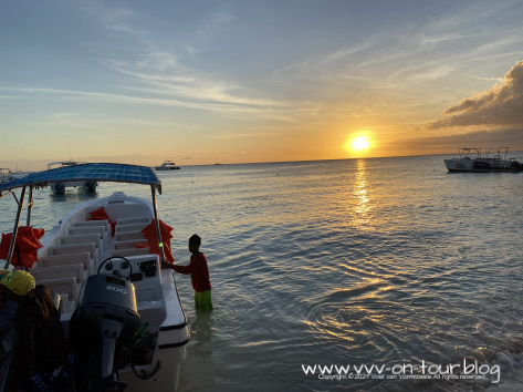 Die Rückfahrt beginnt und ist wieder ein riesiger Spaß. Einmal dürfen wir noch vom Boot aus ins Wasser springen und die letzten Rumvorräte leeren. Die Stimmung ist schon recht heiter geworden, während wir im Wasser „Rumdümpeln“. Die Sonne beginnt sich rot zu verfärben und wir sind wieder am Bus, der uns zurückbringt zum Hafen. Das war ein besonders schöner Ausflug!