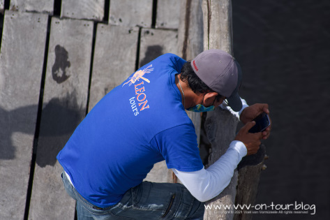 Schon um 6.00 Uhr wird in Puerta Maya angelegt. Es ist stark bewölkt und es hat wohl auch in der Nacht viel geregnet. Um 9.00 Uhr sind wir mit unserem Guide JC von Leon Tours verabredet.