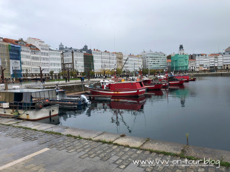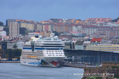 Die Hafeneinfahrt ist sehr schön und schon von Weitem zeigt sich der Leuchtturm „Torre de Hercules“ an der rauen Küste Galiciens. Den wollen wir besuchen.