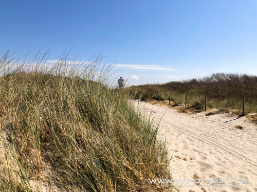 Es gibt einen schönen Naturpfad durch die Dünen mit Aussichtsturm bis an das Wasser. Am Hafen überrascht uns ein nettes Lokal mit gemütlicher Sonnenterrasse. In der „Kajüte am Hafen“ gab es prima Fischbrötchen und eine sehr nette Bedienung. Hier gibt es das obligatorische alkoholfreie Weizenbier und leckere Fischbrötchen zu einem fairen Preis. Fischbrötchen muss sein!