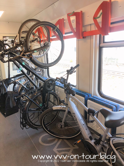 Unsere Radtour beginnt um 10.51 Uhr am Hauptbahnhof. Der EC in Richtung Prag bringt uns bis Wittenberge. Das Ein- und Aussteigen mit Fahrrad und Packtaschen ist etwas beschwerlich. Man ist immer in Eile, um rechtzeitig rein und rauszukommen. Auch in des Fahrradabteil müssen die Räder rein- und rausgehoben werden und im Abteil werden sie am Vorderrad aufgehängt. Das ist schon mal eine Kraftprobe und Kais Rad, mit den etwas dickeren Reifen, lässt dies gar nicht zu.