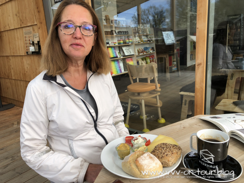 Ein vegetarisch / veganes Frühstück wird hier in dem kleinen Bistro angeboten. Um die gute Sache zu unterstützen, nutzen wir das Angebot. Und schon geht es wieder los.
