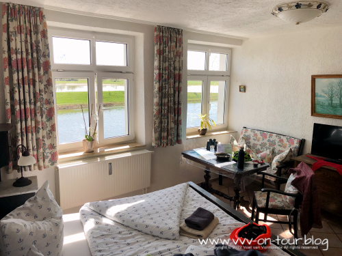 Zum Glück hat alles geklappt und wir stehen nach einer kurzen Reisezeit bei bestem Wetter in Wittenberge auf dem Bahnsteig. Die Unterkunft „Zum goldenen Anker“ ist nicht weit entfernt und liegt direkt an der Elbpromenade. Ein altes Gasthaus mit gemütlichen Zimmern.