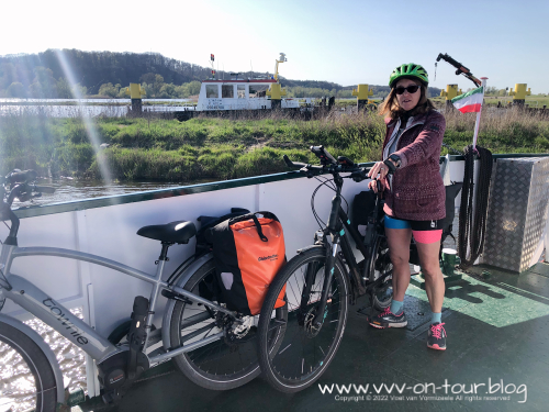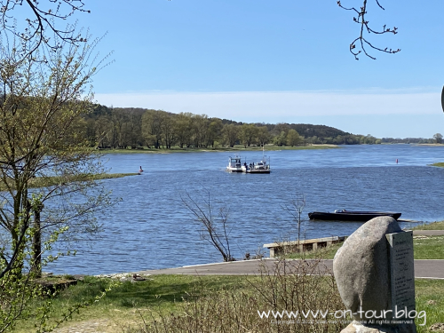 Bis Dömitz begleitet uns der schöne Weg und dann wird es anstrengender. Wir bleiben auf der rechten Elbseite. Es wird hügeliger, wir fahren durch Waldgebiete mit schlechterem Untergrund. Für eine Pause sorgt ein kleiner Einkauf für ein mögliches Picknick. Die letzten 10 km werden etwas lang, aber dann sehen wir Hitzacker – auf der linken Elbseite – liegen. Eine kleine Fähre bringt uns für stolze 7,00 € rüber.