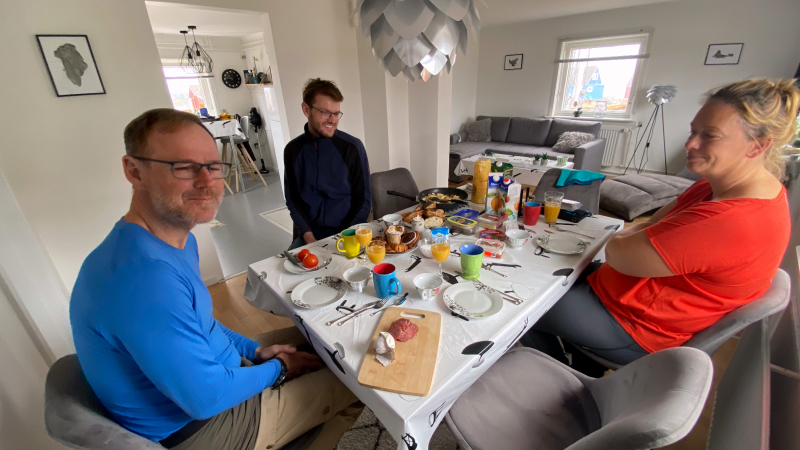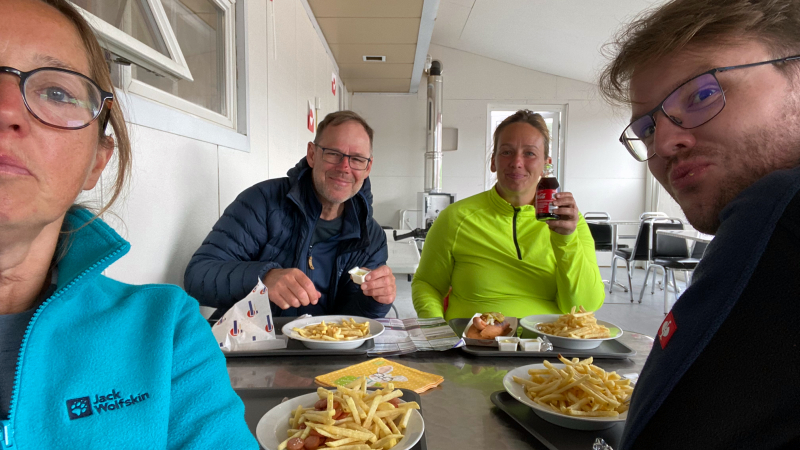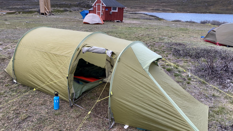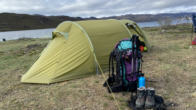 Im Zelt schläft es sich viel besser als in den Hütten. Der Wecker beendet gefühlt den Tiefschlaf. Waschen, Zelt abbauen, Frühstücken und los geht’s. In der Nacht sind noch drei Grönländerinnen in der Hütte eingetroffen.