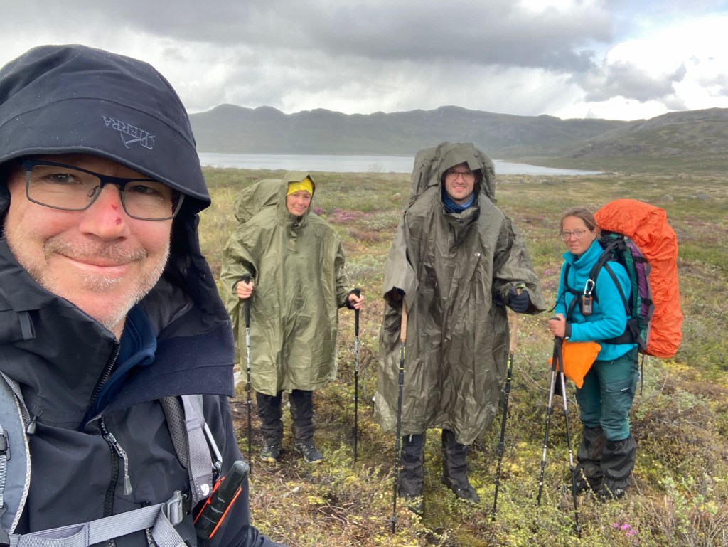 Nach circa 6 km wird eine schöne Mittagspause eingelegt. Unser Tagesziel ist heute 24 km bis zur Katiffik – Hütte. Die Feuchtwiesen, die es zu durchwandern gilt, nehmen ständig zu und uns begleitet das „Quatsch-Geräusch“ der einsinkenden Schuhe. Die Füße bleiben nicht bei allen trocken. So zügig wie gedacht ist der schmale Pfad nicht zu bewältigen.
