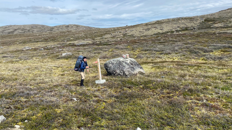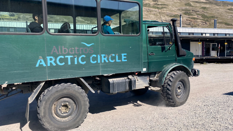 Der Himmel ist strahlend blau und die Temperatur angenehmen. Die ersten Meter sind noch Schotterpiste. Doch dann biegen wir ab auf den Arctic Circle Trail.
