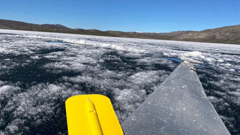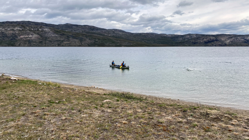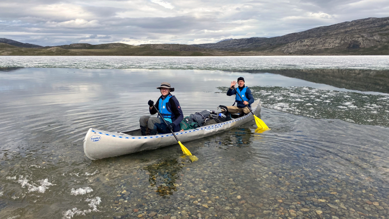 Die Sonne lacht wieder vom Himmel und es ist angenehm warm und das in Grönland. Entspannt gehen wir in den Tag. Es wurde länger geschlafen, sich am und im See gewaschen, gemütlich gefrühstückt und auch ein Waschtag eingelegt. Zwei Kanus lassen sich auftreiben, mit denen wir eine Kanutour bis zum Eisschild unternehmen mit Mittagspicknick.