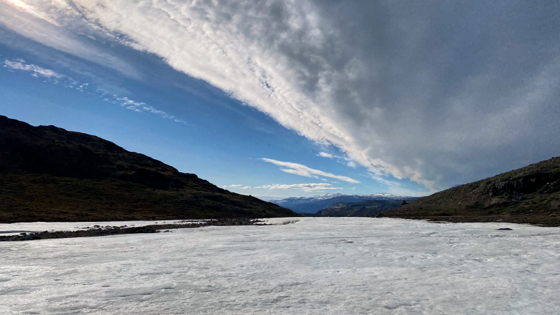 Anschließend wird noch eine sehr schöne Wanderung zu einem anderen See unternommen. Obwohl wir zu Beginn über ein Eisfeld gehen mussten, ist es so warm, dass wir am Ziel in den eiskalten See springen bevor der Rückweg beginnt.