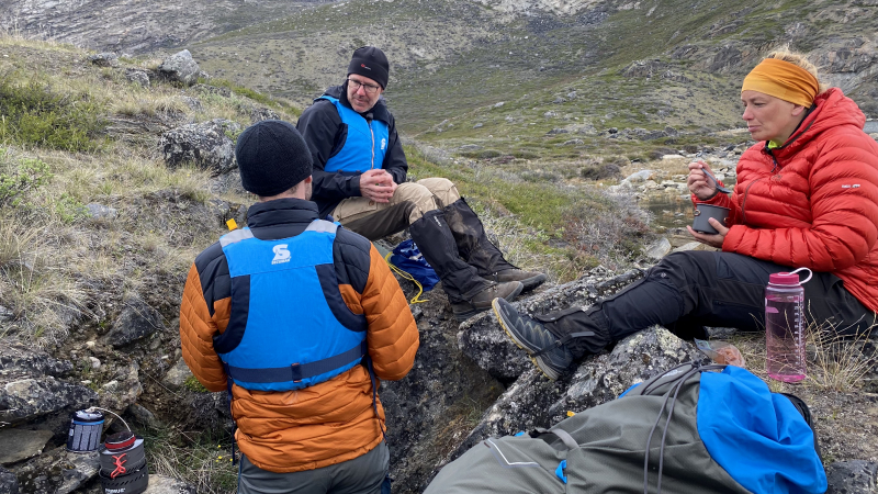 Es gibt schon erste Überlegung zu Hause auch nur noch mit heißem Wasser zu kochen. Ein Tee aus dem leckeren grönländischen Thymian rundet das Festmahl ab. Es ist unsere letzte Nacht auf dem ACT. Wie schnell doch die Zeit vergeht.