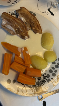 Die Eisberge krachen und es kann beobachtet werden, wie sich Brocken lösen und ins Wasser fallen. Leider fängt es wieder an zu regnen. Die „Disco Line“ meldet sich auch und will die Abfahrt verschieben. Hoffentlich klappt morgen alles wie geplant. Den Flieger von Ilulissat nach Kangalussiaq wollen wir nicht verpassen. Der Wind steht scheinbar ungünstig. Vor wenigen Tagen soll noch kein Eisberg in dieser Bucht gewesen sein. Nun sind hier welche soweit das Auge reicht. Erstmal Essen. Die Damenmannschaft kocht heute ein dänisches Nationalgericht: Dünne Schweinefleischscheiben, Kartoffeln, Möhren und Soße. Zum Nachtisch Apfelkompott. Sehr lecker.